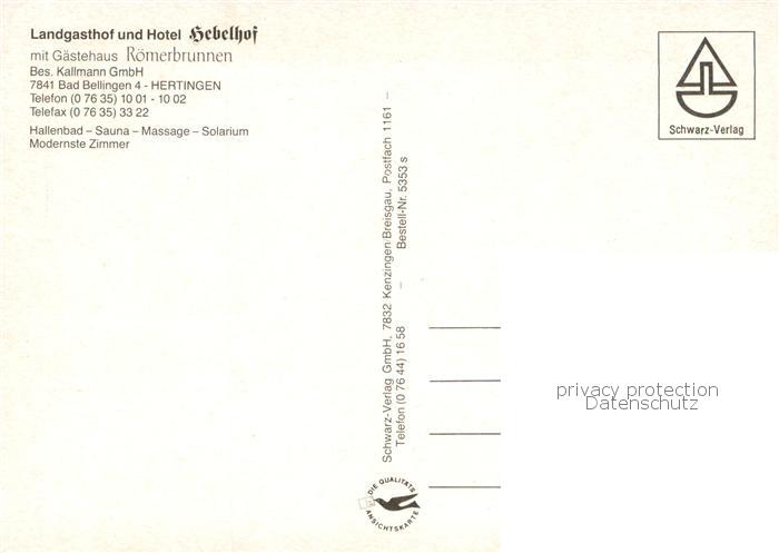 73778416 Bad Bellingen Landgasthof Hotel Restaurant Hebelhof Gastraeume Liegewiese postalisch nicht gelaufen Erhaltung siehe scans [WerneD78] KatCode: 11110008336006
