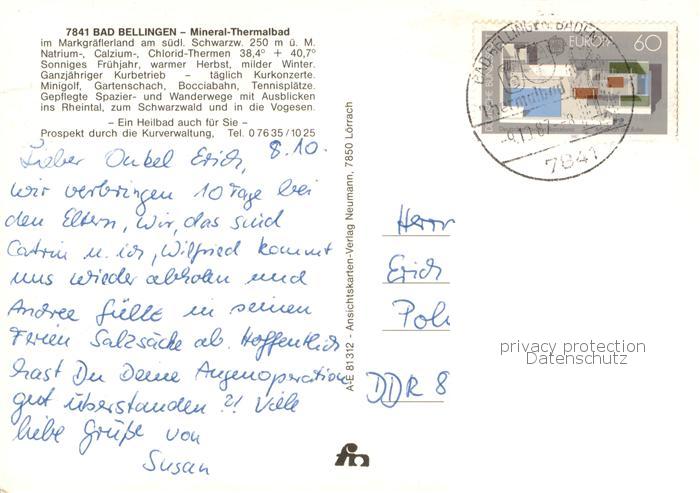 73758463 alte Postkarte Bad Bellingen Mineral-Thermal-Bewegungsbad Teilansichten Minigolf postalisch gelaufen Erhaltung siehe scans [LiesaD40] KatCode: 11110008336006