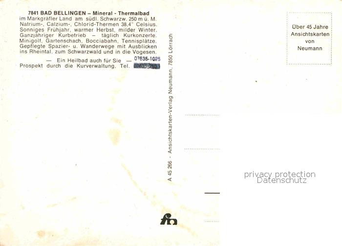 72685667 Bad Bellingen Mineral Thermalbad Fontaene postalisch nicht gelaufen Erhaltung siehe scans [WerneD78] KatCode: 11110008336006