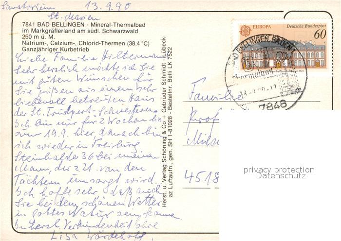 73687394 alte Postkarte Bad Bellingen Mineral-Thermalbad Markgraeflerland Schwarzwald Fliegeraufnahme postalisch gelaufen Erhaltung siehe scans [FriedD77] KatCode: 11110008336006