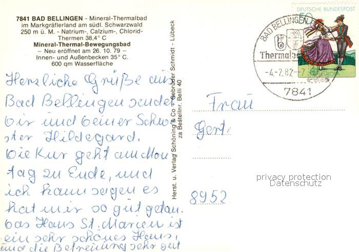 73109083 alte Postkarte Bad Bellingen Mineral-Thermalbad postalisch gelaufen Erhaltung siehe scans [NatalD47] KatCode: 11110008336006