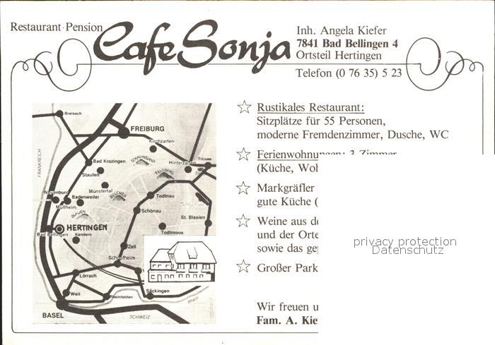 71939041 Bad Bellingen Restaurant Pension Cafe Sonja postalisch nicht gelaufen Werbekarte (keine Postkarte) Erhaltung siehe scans KatCode: 11110008336006