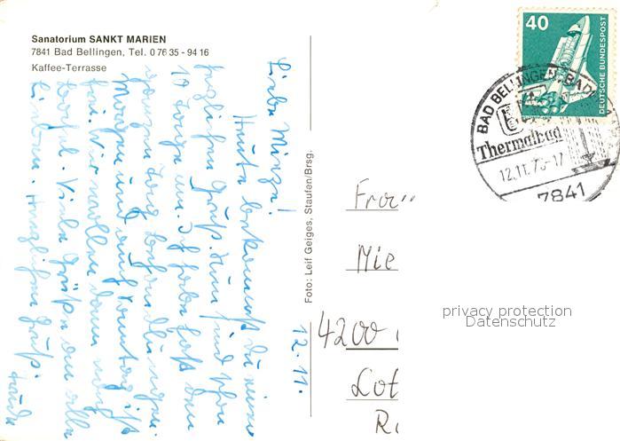 73103483 alte Postkarte Bad Bellingen Sanatorium Sankt Marien postalisch gelaufen Erhaltung siehe scans [KathaD81] KatCode: 11110008336006