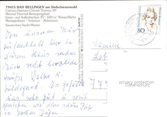 72364889 alte Postkarte Bad Bellingen Sanatorium Sankt Marien postalisch gelaufen Erhaltung siehe scans KatCode: 11110008336006