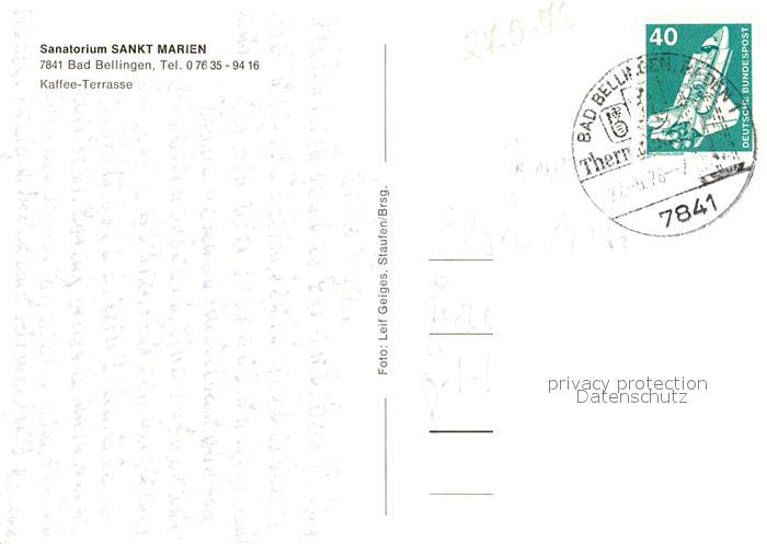 73144895 alte Postkarte Bad Bellingen Sanatorium Sankt Marien Kaffeeterrasse postalisch gelaufen Erhaltung siehe scans [FriedD77] KatCode: 11110008336006