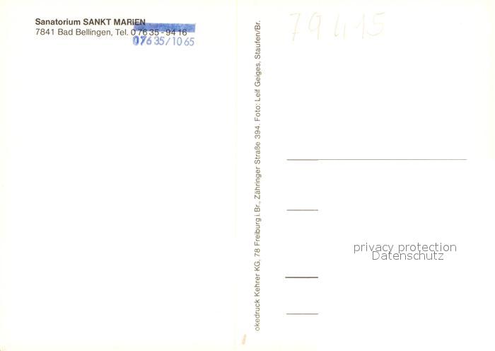 73333061 Bad Bellingen Sanatorium Sankt Marien postalisch nicht gelaufen Erhaltung siehe scans [LiesaD40] KatCode: 11110008336006