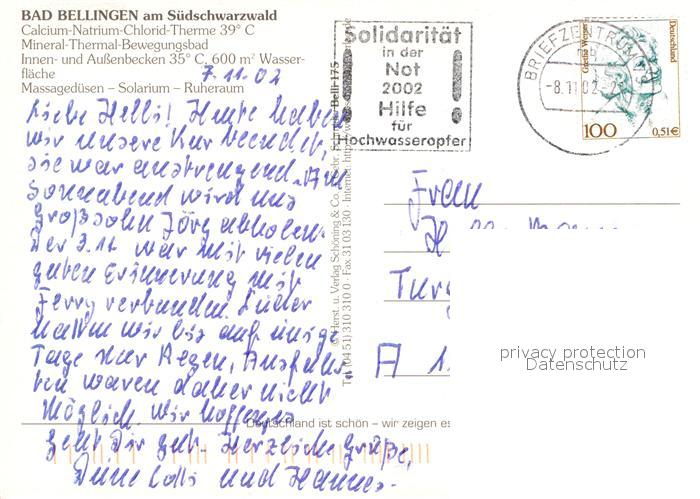 72931537 alte Postkarte Bad Bellingen Sankt Leodegar Kurpark Aussenbecken Kurhaus Rathaus postalisch gelaufen Erhaltung siehe scans [KathaD81] KatCode: 11110008336006