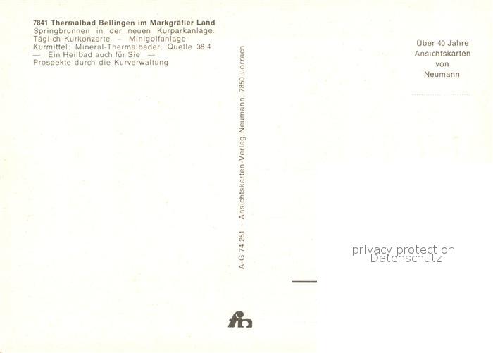 72972588 Bad Bellingen Springbrunnen Kurparkanlage Thermalbad im Markgraefler Land postalisch nicht gelaufen Erhaltung siehe scans [FriedD77] KatCode: 11110008336006
