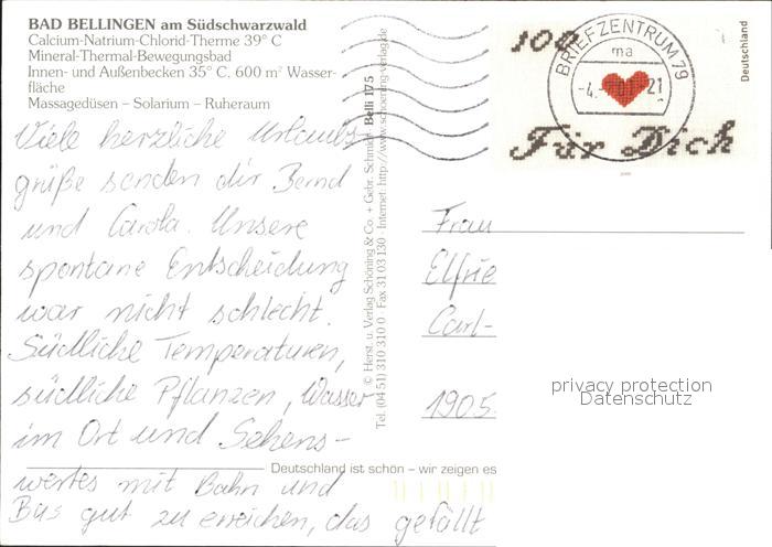 72312479 alte Postkarte Bad Bellingen St Leodegar Rathaus Kurpark Aussenbecken Kurhaus Innenbecken postalisch gelaufen Erhaltung siehe scans KatCode: 11110008336006