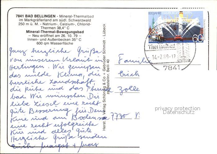 72420138 alte Postkarte Bad Bellingen Thermalbad postalisch gelaufen Erhaltung siehe scans KatCode: 11110008336006