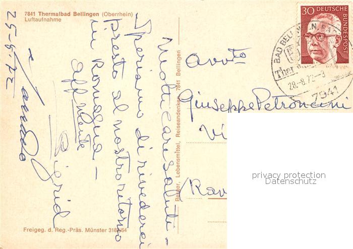 73080499 alte Postkarte Bad Bellingen Thermalbad Fliegeraufnahme postalisch gelaufen Erhaltung siehe scans [FriedD77] KatCode: 11110008336006