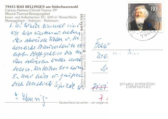 72769013 alte Postkarte Bad Bellingen Thermalbad Kurort Schwarzwald Fliegeraufnahme postalisch gelaufen Erhaltung siehe scans [FriedD77] KatCode: 11110008336006
