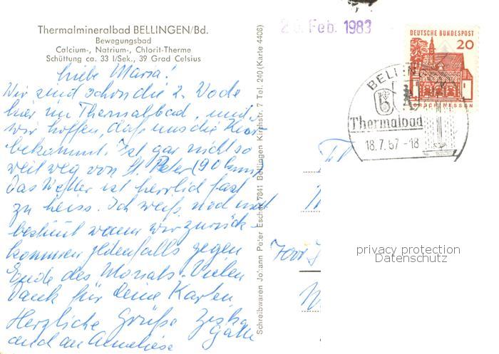 73764212 alte Postkarte Bad Bellingen Thermalmineralbad Bewegungsbad postalisch gelaufen Erhaltung siehe scans [LiesaD40] KatCode: 11110008336006