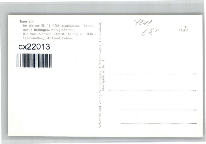30739466 Bad Bellingen Thermalquelle postalisch nicht gelaufen KatCode: 11110008336006