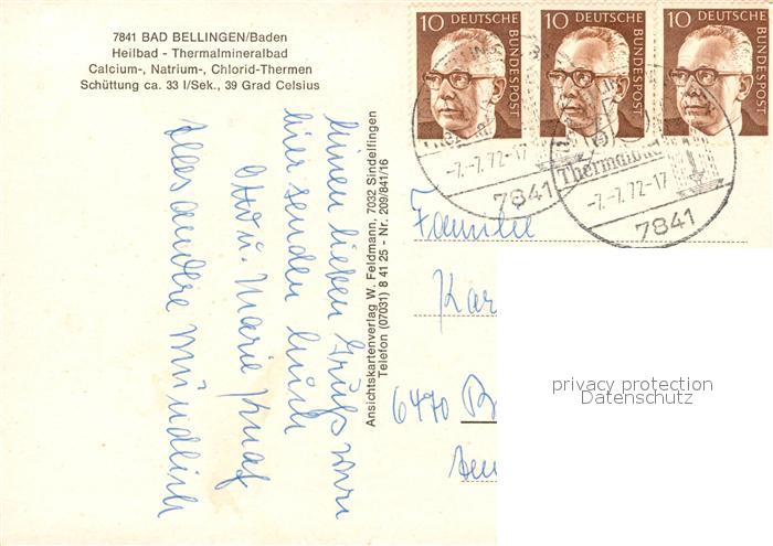 73052115 alte Postkarte Bad Bellingen postalisch gelaufen Erhaltung siehe scans [NatalD47] KatCode: 11110008336006
