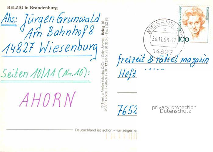 72891165 alte Postkarte Bad Belzig Marienkirche Magdeburger Str Rathaus Panorama Burg Eisenhardt postalisch gelaufen Erhaltung siehe scans [WerneD78] KatCode: 11110012069020