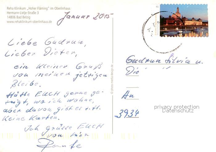 73660332 alte Postkarte Bad Belzig Reha Klinikum Hoher Flaeming im Oberlinhaus postalisch gelaufen Erhaltung siehe scans [FriedD77] KatCode: 11110012069020