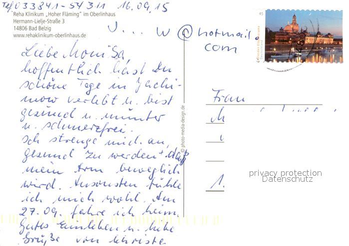 73743628 alte Postkarte Bad Belzig Reha Klinikum Hoher Flaeming im Oberlinhaus Park postalisch gelaufen Erhaltung siehe scans [WerneD78] KatCode: 11110012069020