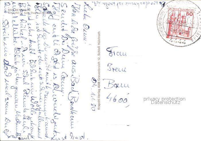 71847287 alte Postkarte Bad Bentheim Fliegeraufnahme Thermalheilbad postalisch gelaufen KatCode: 11110003456001