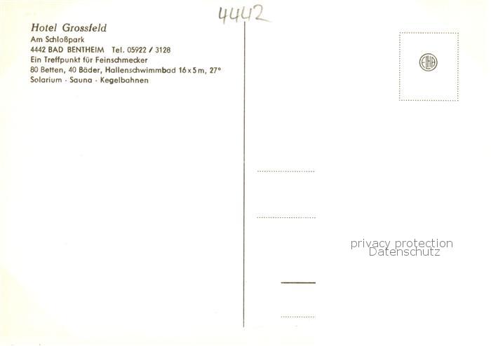 73869332 Bad Bentheim Hotel Grossfeld Am Schlosspark Schloss postalisch nicht gelaufen Erhaltung siehe scans [WerneD78] KatCode: 11110003456001