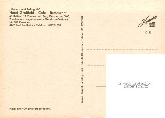 73787279 Bad Bentheim Hotel Grossfeld Cafe Restaurant postalisch nicht gelaufen Erhaltung siehe scans [FriedD77] KatCode: 11110003456001