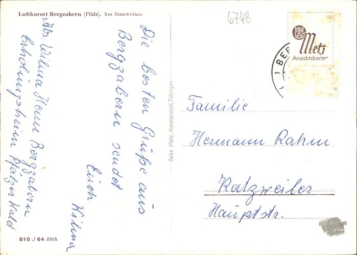 41258193 alte Postkarte Bad Bergzabern Am Stauweiher postalisch gelaufen gute Erhaltung KatCode: 11110007337005