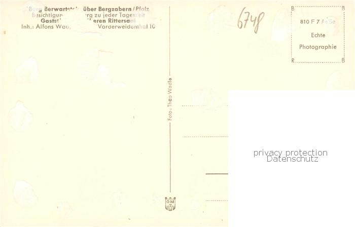 73790249 Bad Bergzabern Burg Berwartstein postalisch nicht gelaufen Erhaltung siehe scans [WerneD78] KatCode: 11110007337005