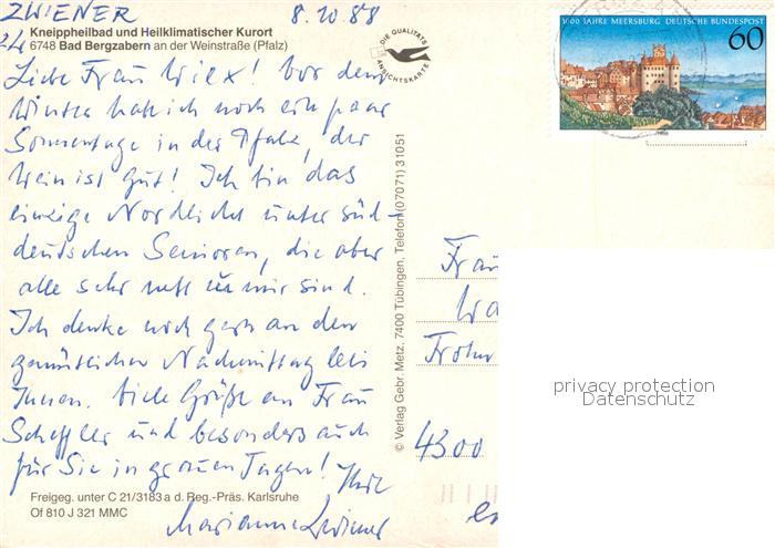 73322263 alte Postkarte Bad Bergzabern Fliegeraufnahme postalisch gelaufen Erhaltung siehe scans [KathaD81] KatCode: 11110007337005