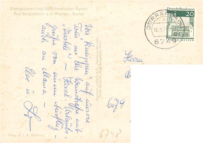 73878422 alte Postkarte Bad Bergzabern Fliegeraufnahme postalisch gelaufen Erhaltung siehe scans [WerneD78] KatCode: 11110007337005