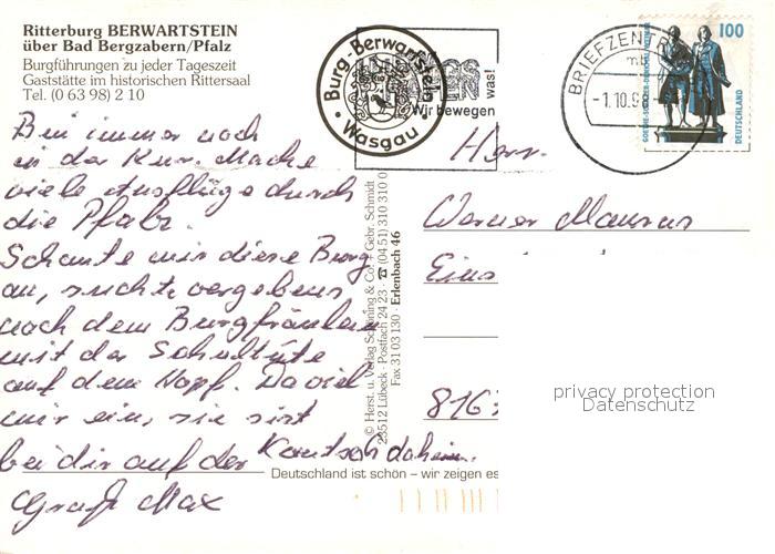 73129720 alte Postkarte Bad Bergzabern Fliegeraufnahme Ritterburg Berwartstein postalisch gelaufen Erhaltung siehe scans [NatalD47] KatCode: 11110007337005