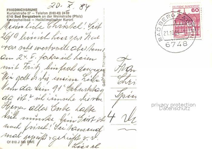 72739752 alte Postkarte Bad Bergzabern Friedrichsruhe postalisch gelaufen Erhaltung siehe scans [LiesaD40] KatCode: 11110007337005