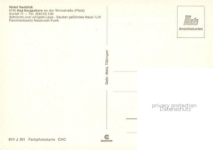 73323298 Bad Bergzabern Hotel Seeblick postalisch nicht gelaufen Erhaltung siehe scans [FriedD77] KatCode: 11110007337005
