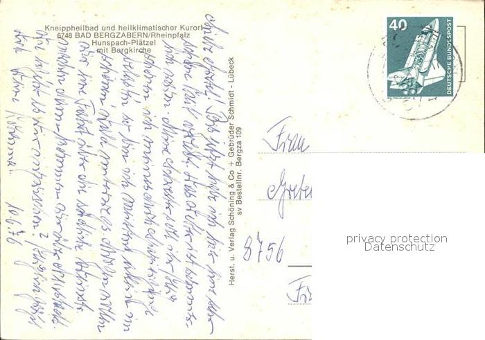 72069399 alte Postkarte Bad Bergzabern Hunspach Plaetzel mit Bergkirche postalisch gelaufen Erhaltung siehe scans KatCode: 11110007337005