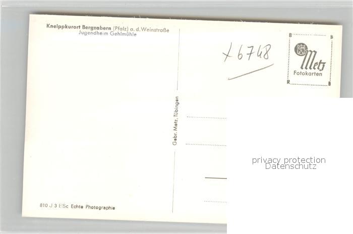 42966057 Bad Bergzabern Jugendheim Gehlmuehle postalisch nicht gelaufen Erhaltung siehe scans [WerneD78] KatCode: 11110007337005