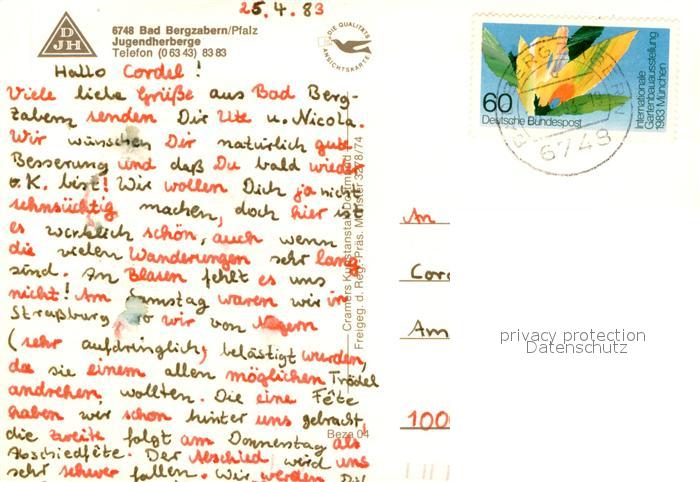 73617110 alte Postkarte Bad Bergzabern Jugendherberge Fliegeraufnahme postalisch gelaufen Erhaltung siehe scans [PaolaD17] KatCode: 11110007337005