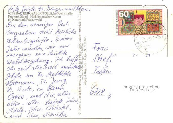 72878647 alte Postkarte Bad Bergzabern Kneippheilbad Kurort Naturpark Pfaelzerwald Fliegeraufnahme postalisch gelaufen Erhaltung siehe scans [FriedD77] KatCode: 11110007337005