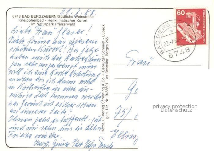 73203460 alte Postkarte Bad Bergzabern Kneippheilbad Naturpark Pfaelzerwald Fliegeraufnahme postalisch gelaufen Erhaltung siehe scans [FriedD77] KatCode: 11110007337005