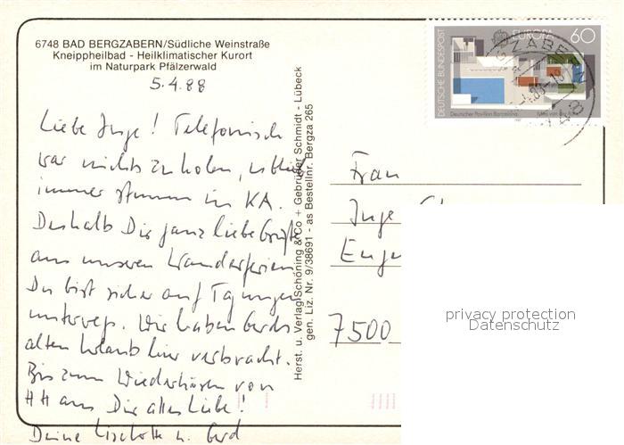 73203463 alte Postkarte Bad Bergzabern Kneippheilbad Naturpark Pfaelzerwald Fliegeraufnahme postalisch gelaufen Erhaltung siehe scans [FriedD77] KatCode: 11110007337005