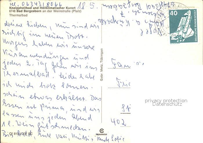 72379302 alte Postkarte Bad Bergzabern Kneippheilbad Thermalbad postalisch gelaufen Erhaltung siehe scans KatCode: 11110007337005