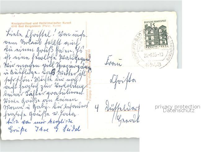 71850561 alte Postkarte Bad Bergzabern Kneippheilbad und Heilklimatischer Kurort Fliegeraufnahme postalisch gelaufen KatCode: 11110007337005