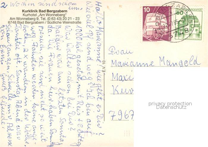 73725898 alte Postkarte Bad Bergzabern Kurbetriebe Am Wonneberg Restaurant Terrasse Hallenbad postalisch gelaufen Erhaltung siehe scans [FriedD77] KatCode: 11110007337005