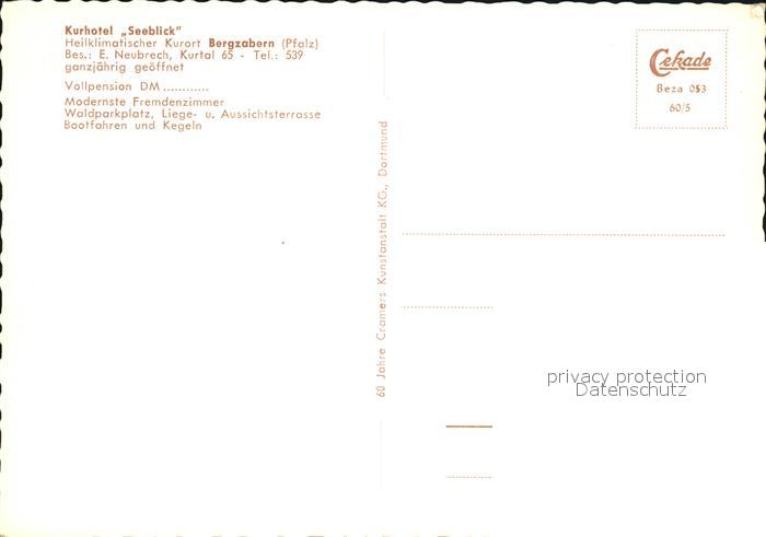 72476689 Bad Bergzabern Kurhotel Seeblick postalisch nicht gelaufen Erhaltung siehe scans KatCode: 11110007337005