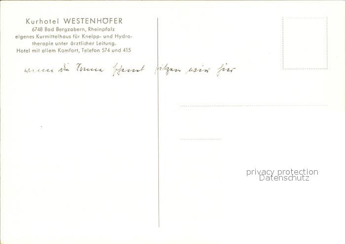 72454471 Bad Bergzabern Kurhotel Westenhoefer postalisch nicht gelaufen Erhaltung siehe scans KatCode: 11110007337005