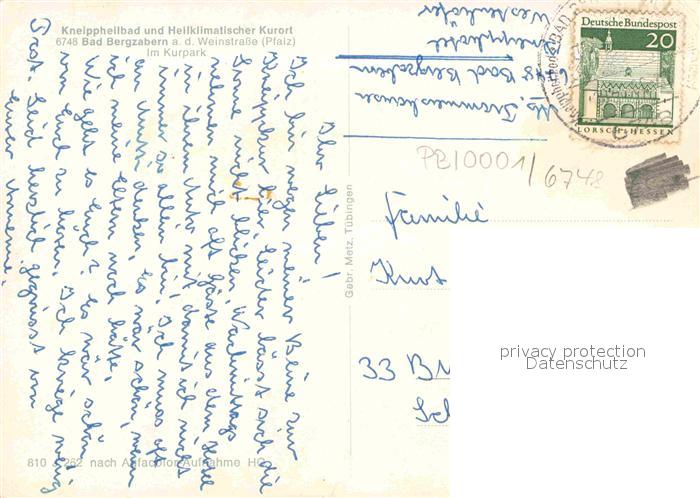 72859952 alte Postkarte Bad Bergzabern Kurpark postalisch gelaufen Erhaltung siehe scans [LiesaD40] KatCode: 11110007337005