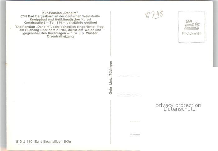 42966210 Bad Bergzabern Kurpension Daheim Terrasse Zimmer postalisch nicht gelaufen Erhaltung siehe scans [WerneD78] KatCode: 11110007337005