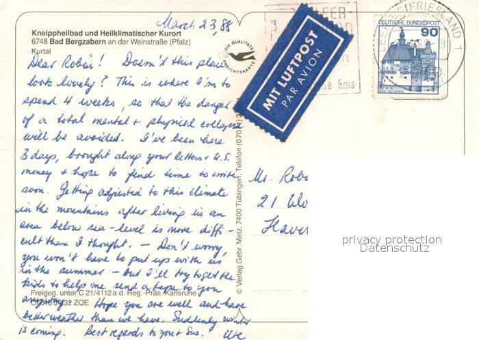 73686173 alte Postkarte Bad Bergzabern Kurtal Fliegeraufnahme postalisch gelaufen Erhaltung siehe scans [WerneD78] KatCode: 11110007337005