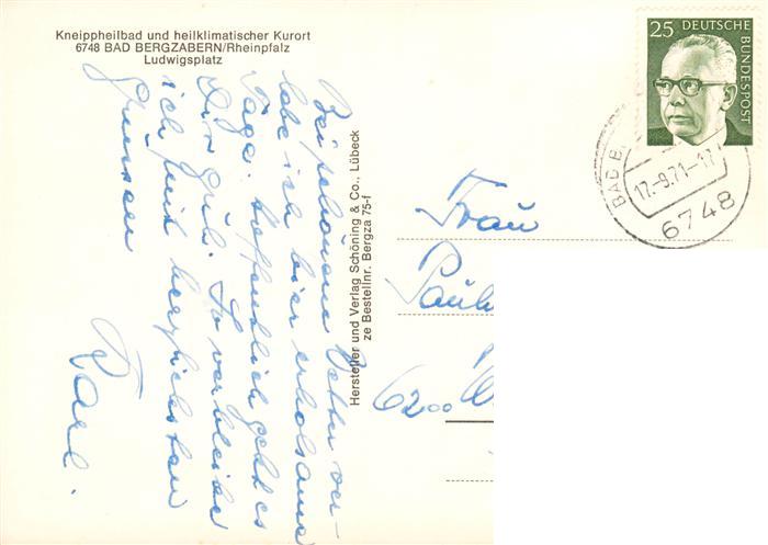 73885495 alte Postkarte Bad Bergzabern Ludwigsplatz Brunnen postalisch gelaufen Erhaltung siehe scans [WerneD78] KatCode: 11110007337005