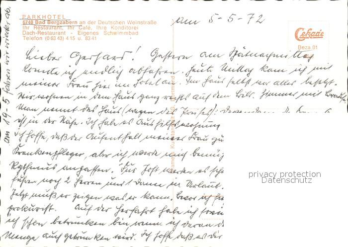 72454470 Bad Bergzabern Parkhotel postalisch nicht gelaufen Erhaltung siehe scans KatCode: 11110007337005