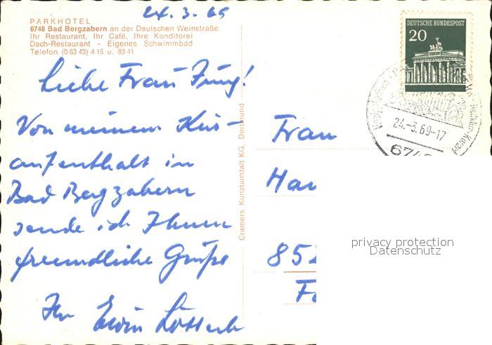 72591575 alte Postkarte Bad Bergzabern Parkhotel Fliegeraufnahme postalisch gelaufen Erhaltung siehe scans [WerneD78] KatCode: 11110007337005