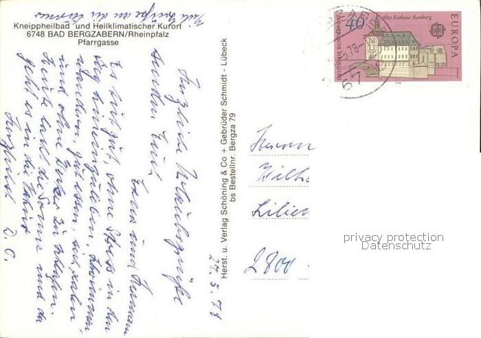 alte Postkarte Bad Bergzabern Pfarrgasse postalisch gelaufen Erhaltung siehe scans
